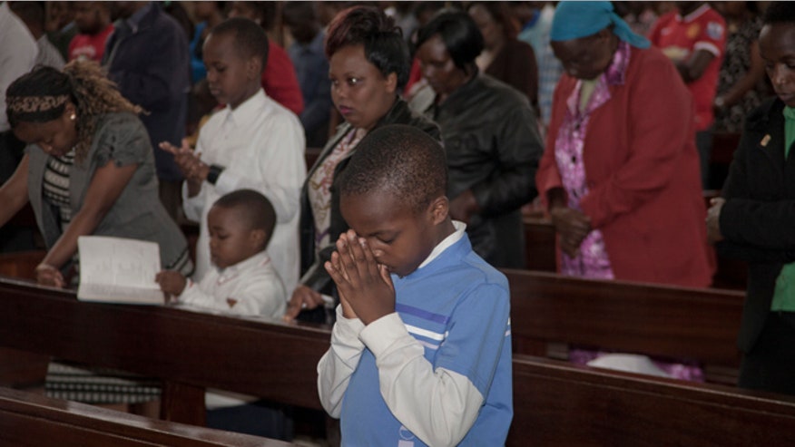 April 5, 2015: A Kenyan Christian child in prayer as he joins a morning service at Holy Family Basilica, Nairobi, Kenya, during Easter Sunday when Christians celebrate the resurrection of their Lord, Jesus Christ, according to Scripture after his crucifixion on the cross. Special prayers were held Sunday for the victims of the recent Garissa University Attack, when Al-Shabaab gunmen rampaged through the university in northeastern Kenya on Thursday, killing scores of people. (AP)