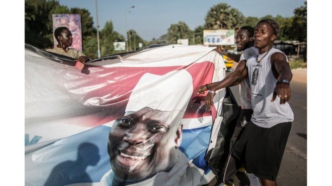 Hundreds of Gambians took to the streets to celebrate one of the biggest election upsets West Africa has ever seen.