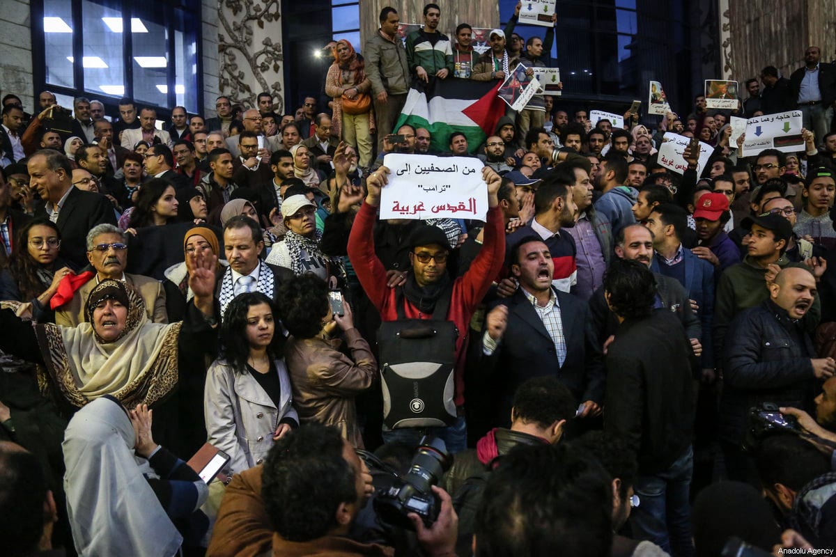 ![Reactions against Trump's recognition of Jerusalem as Israel's capital People gather to protest against the US President Donald Trump's recognition of Jerusalem as Israel's capital, in front of headquarters of the journalists' union in Cairo, Egypt on December 7, 2017 [Mohamed el Raai / Anadolu Agency]](https://i1.wp.com/www.middleeastmonitor.com/wp-content/uploads/2017/12/20171207_2_27353186_28575085.jpg?w=619&h=413&crop&quality=75&strip=all&ssl=1)