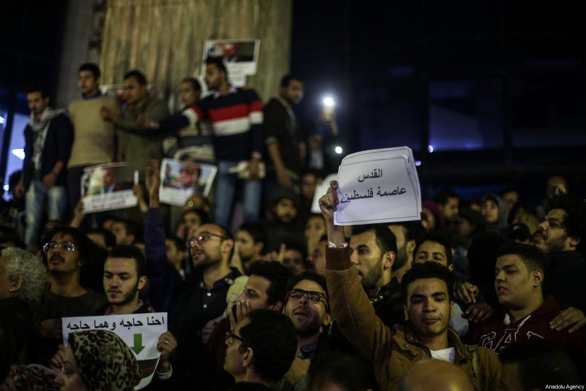 ![Protest against US decision to recognize Jerusalem as Israel's capital Egyptian protesters shout slogans as they stage a protest against US President Donald Trump's announcement to recognise Jerusalem as the capital of Israel, after Friday Prayer at Al-Azhar Mosque in Cairo, Egypt on December, 8, 2017 [Stringer / Anadolu Agency]](https://i0.wp.com/www.middleeastmonitor.com/wp-content/uploads/2017/12/20171208_2_27370519_28606723.jpg?w=307&h=205&crop&quality=75&strip=all&ssl=1)