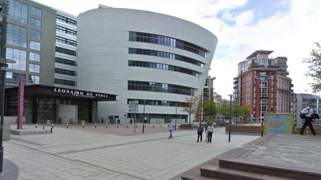 He was stabbed several times in front of the city's private Pôle Léonard de Vinci university in the La Defense business district, where he taught.