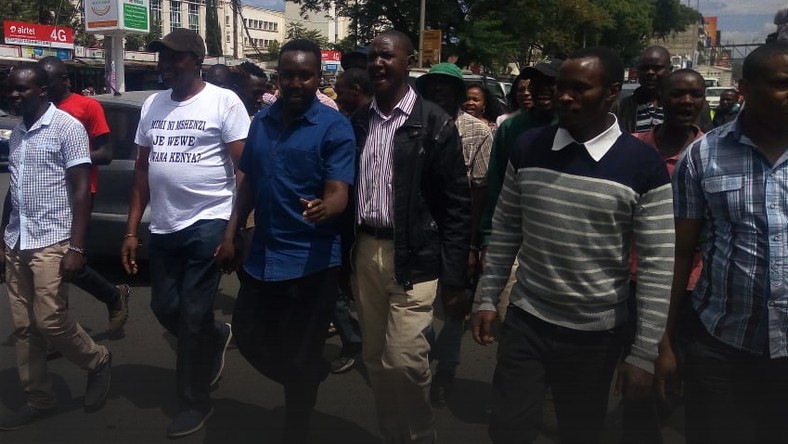 Bahati MP Kimani Ngunjiri on Tuesday led a section of his constituents in a demonstration meant to protest President Uhuru Kenyatta's handshake with ODM Leader Raila Odinga.