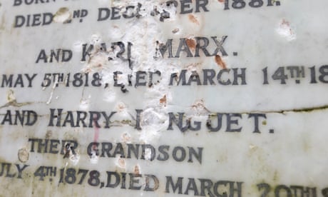 The latest attack comes less than two weeks after the marble plaque on the tomb was defaced by an apparent attempt to scrape and chip Marx's name off the marble slab with a hammer.