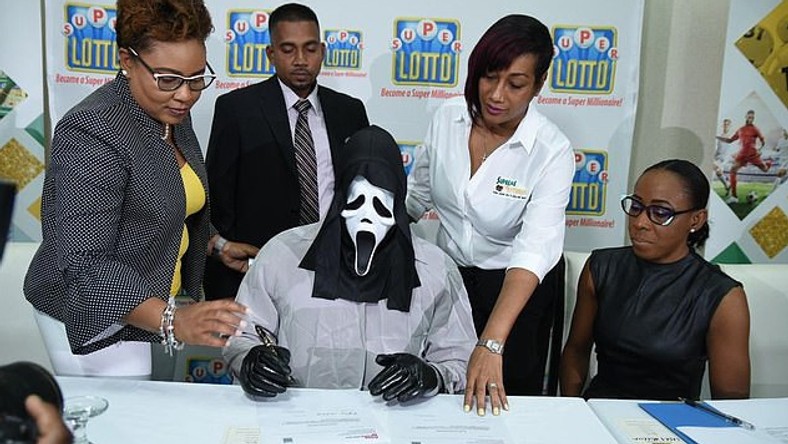 Lottery winner turns up in mask to avoid being recognised by money-thirsty relatives