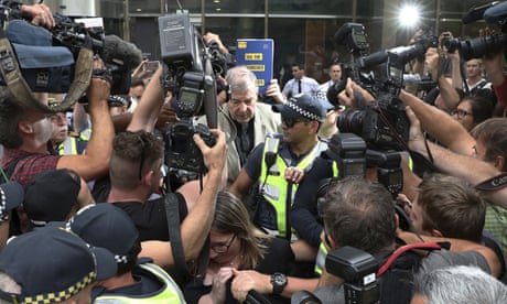 Pell was sent through the door to the cells. Kidd made his own exit, his robes gathered around him and a look like death on his face. Helicopters hovered overhead with cameras hoping for a shot of Pell in a prison van.