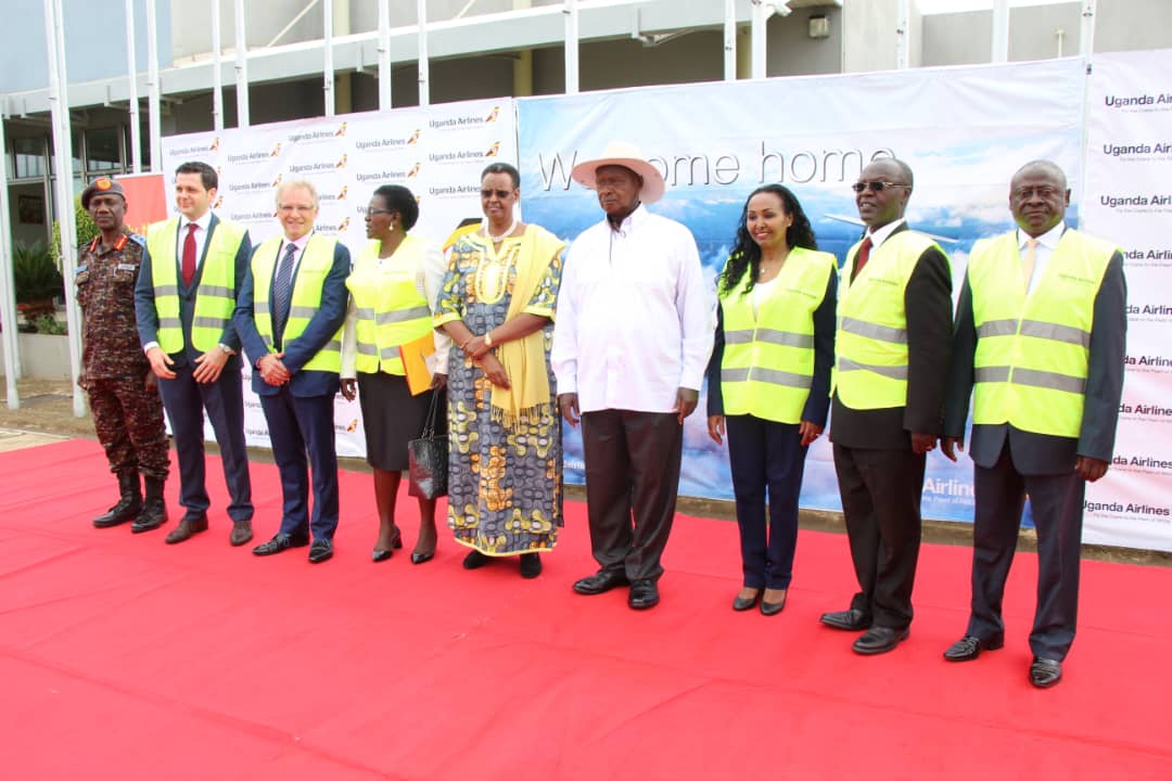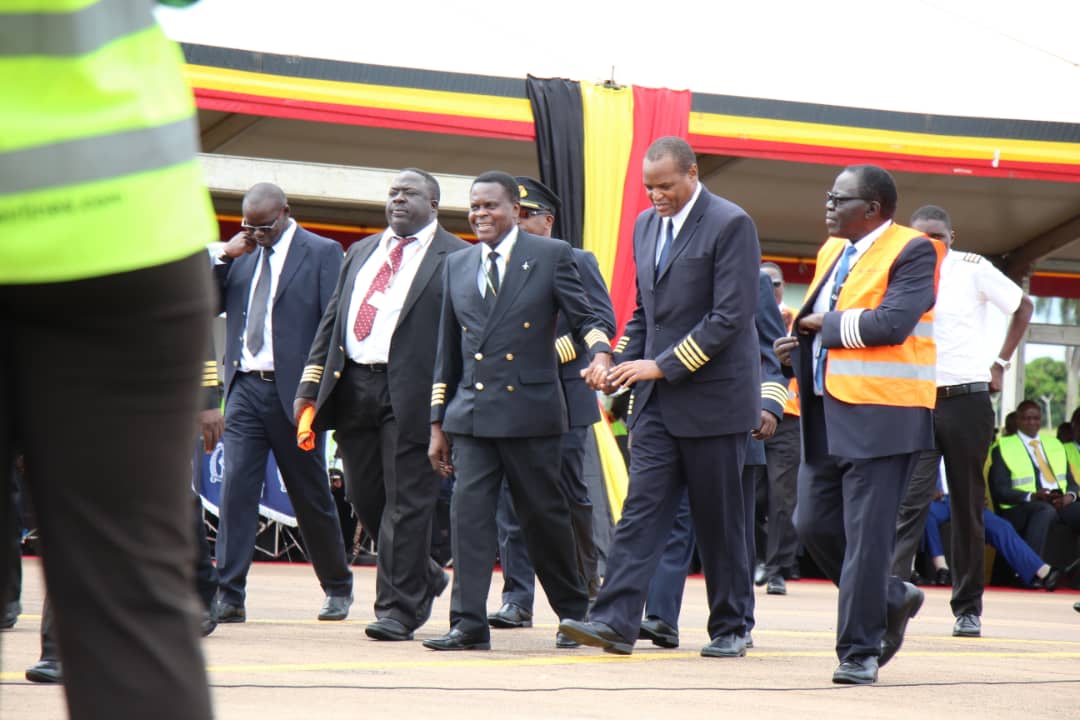 Two CRJ900 Bombardier model jetliners arrived at the Old Entebbe airport on Tuesday morning and were officially received by President Yoweri Museveni. The ceremony was attended by several dignitaries including the Vice President of Bombardier Inc., Ministers, MPs, diplomats among others.