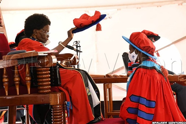 UMI chancellor Geraldine Namirembe Bitamazire confers a degree on a graduand