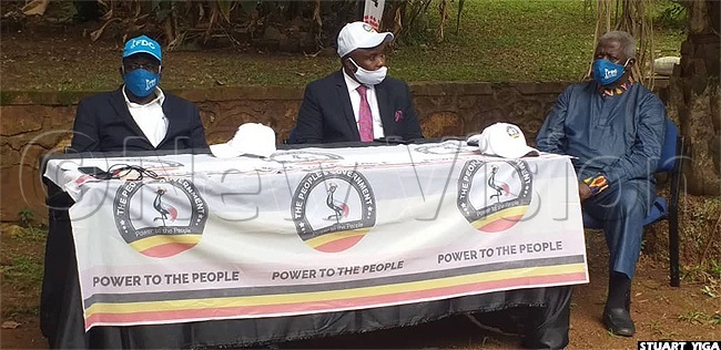 In attendance at Besigye's press conference at his offices at Katonga road were, from left, Amuriat, Lord Mayor Erias Lukwago and Biriggwa.
