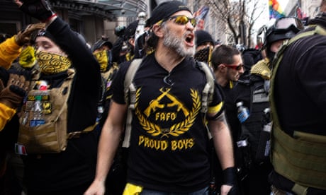Washington police arrested Tarrio in early January when he arrived in the city two days before the Capitol Hill riot. He was charged with possessing two high-capacity rifle magazines, and burning a Black Lives Matter banner during a December demonstration by supporters of Donald Trump. The DC superior court ordered him to leave the city pending a court date in June.