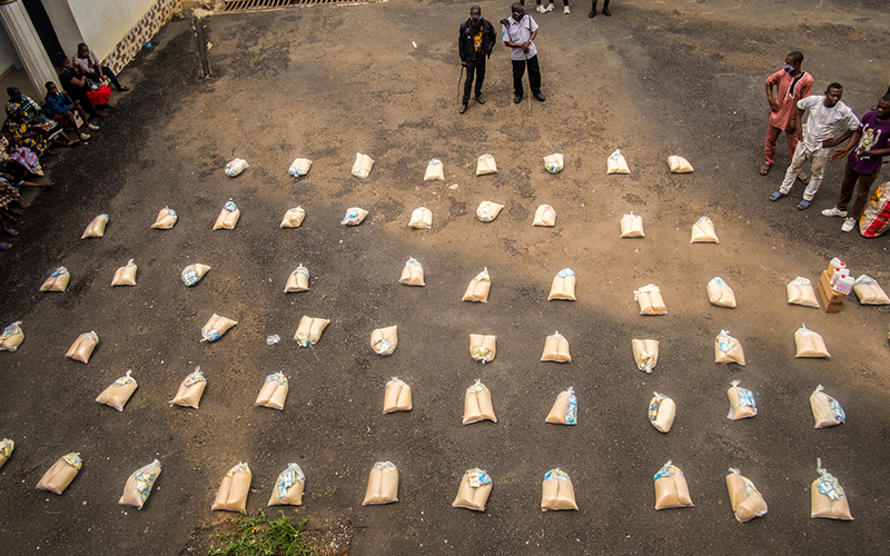 Bayo Omoboriowo distributes food items and beverages to the less privileged, vulnerable and elderly in his hometown of Ijero Ekiti, in Ekiti State, during the government-imposed lockdown to prevent the spread of the coronavirus in Nigeria.