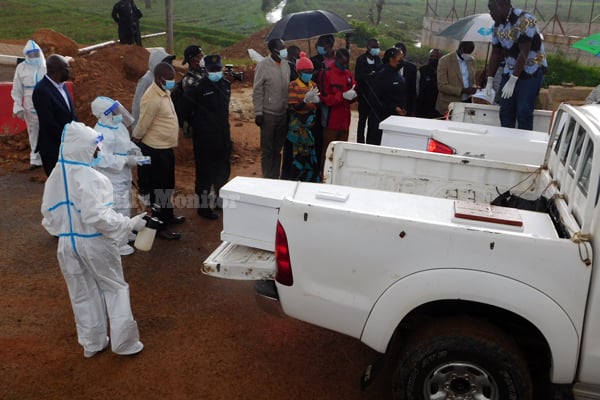 The two bodies of Rwandan nationals were handed over Thursday afternoon at Katuna border post. PHOTO / ROBERT MUHEREZA